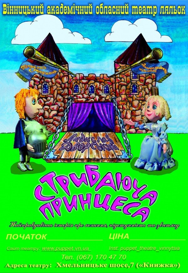 Кукольный спектакль «Прыгающая принцесса» состоится 30 ноября 2025, 14:00, воскресенье в Винницкий академический областной театр кукол. С помощью сервиса internet-bilet.ua, Вы сможете с легкостью забронировать, заказать и купить билеты на интересующий Вас концерт, спектакль, оперу, балет, мастер-классы, спортивные и детские мероприятия, оплатив их самым удобным для Вас способом: через интернет банковской картой VISA/MasterCard, наличными или курьером, если сделаете заказ билета c доставкой.
