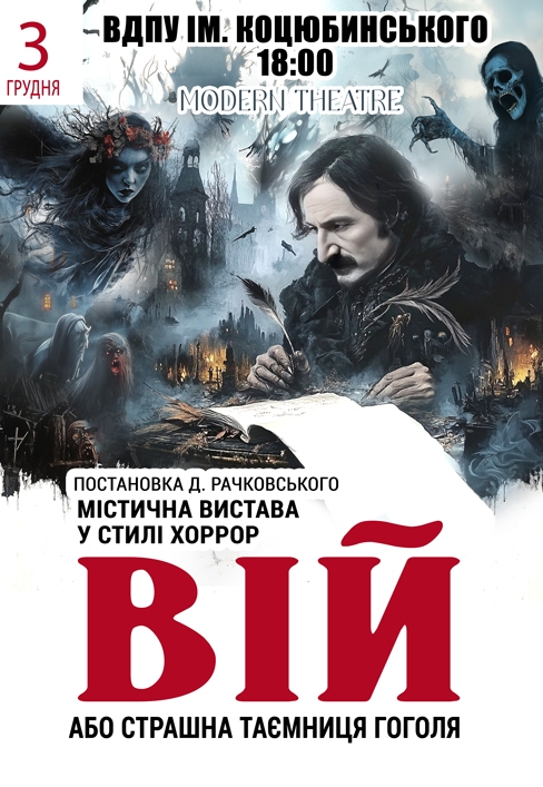 Спектакль «Вий» состоится 3 декабря 2025, 18:00, среда в Винницкий государственный педагогический университет им. Михаила Коцюбинского. С помощью сервиса internet-bilet.ua, Вы сможете с легкостью забронировать, заказать и купить билеты на интересующий Вас концерт, спектакль, оперу, балет, мастер-классы, спортивные и детские мероприятия, оплатив их самым удобным для Вас способом: через интернет банковской картой VISA/MasterCard, наличными или курьером, если сделаете заказ билета c доставкой.