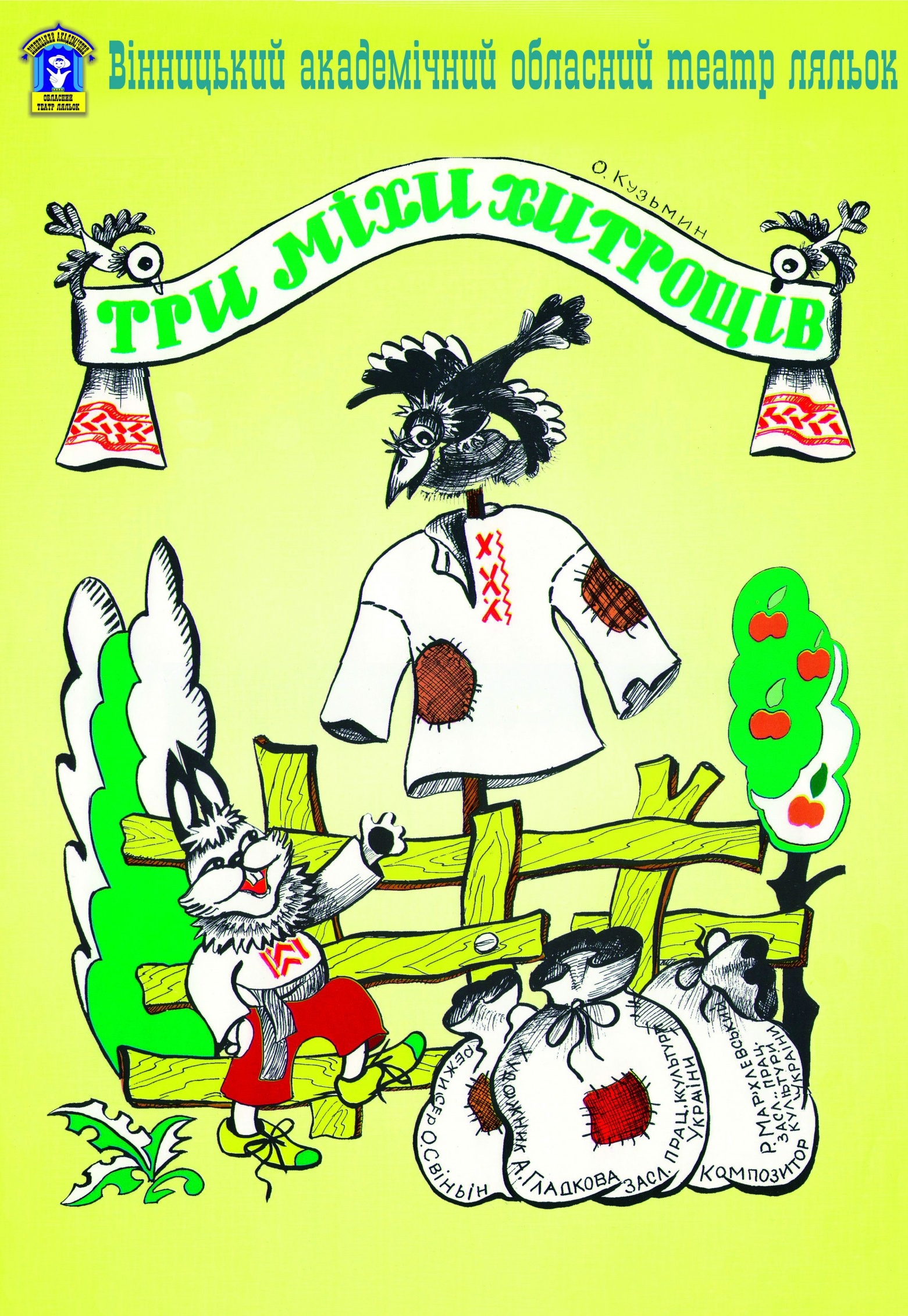 Лялькова вистава «Три міхи хитрощів» відбудеться 8 березня 2026, 14:00, неділя в Вінницький академічний обласний театр ляльок. За допомогою сервісу internet-bilet.ua, Ви зможете з легкістю забронювати, замовити та купити квитки на концерт, спектакль, оперу, балет, майстер-класи, спортивні та дитячі заходи, що Вас цікавлять, оплативши їх найбільш зручним для Вас способом: через інтернет банківською карткою VISA/MasterCard, готівкою або кур'єром, якщо зробите замовлення квитка з доставкою.