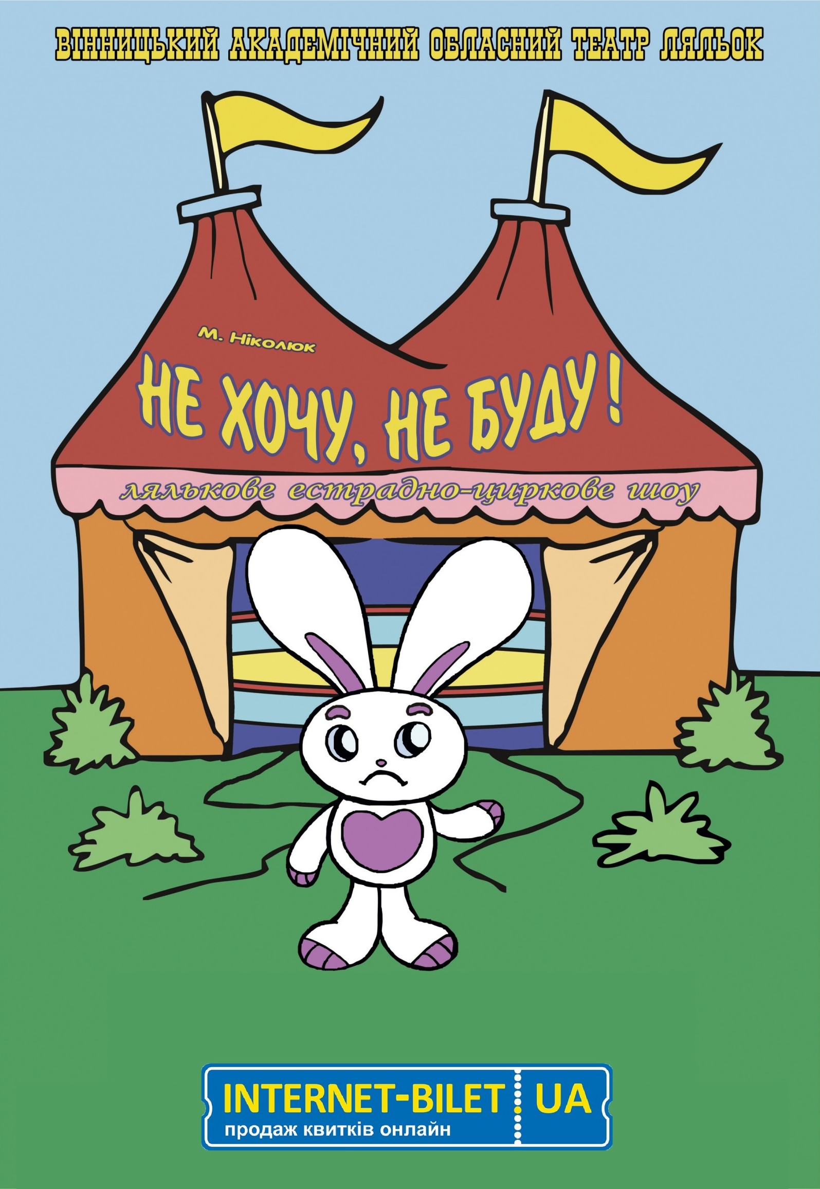Лялькове циркове шоу «Не хочу! Не буду!» відбудеться 14 березня 2026, 14:00, субота в Вінницький академічний обласний театр ляльок. За допомогою сервісу internet-bilet.ua, Ви зможете з легкістю забронювати, замовити та купити квитки на концерт, спектакль, оперу, балет, майстер-класи, спортивні та дитячі заходи, що Вас цікавлять, оплативши їх найбільш зручним для Вас способом: через інтернет банківською карткою VISA/MasterCard, готівкою або кур'єром, якщо зробите замовлення квитка з доставкою.