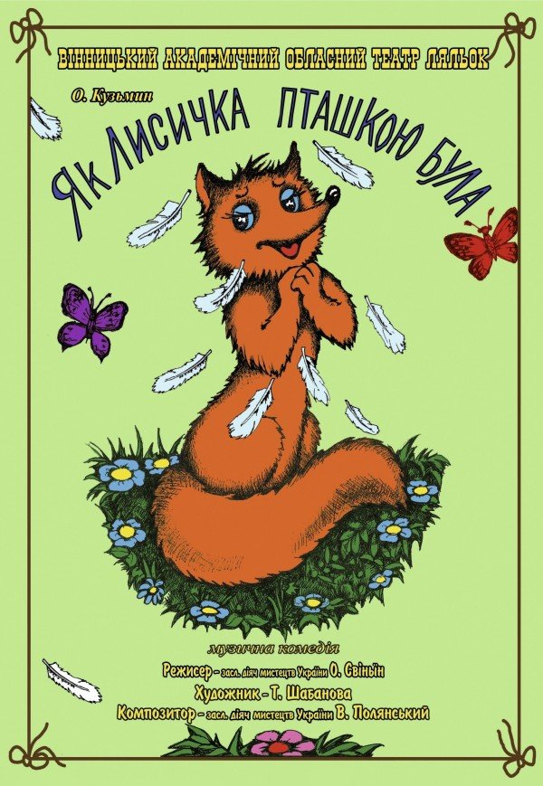 Театр ляльок «Як лисичка пташкою була» відбудеться 2 травня 2026, 11:00, субота в Вінницький академічний обласний театр ляльок. За допомогою сервісу internet-bilet.ua, Ви зможете з легкістю забронювати, замовити та купити квитки на концерт, спектакль, оперу, балет, майстер-класи, спортивні та дитячі заходи, що Вас цікавлять, оплативши їх найбільш зручним для Вас способом: через інтернет банківською карткою VISA/MasterCard, готівкою або кур'єром, якщо зробите замовлення квитка з доставкою.