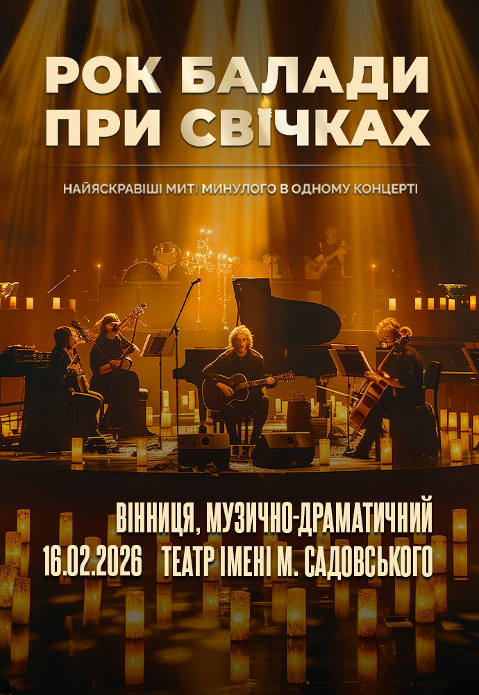 Рок балади при cвічках відбудеться 16 лютого 2026, 18:00, понеділок в Академічний музично-драматичний театр ім. М. Садовського. За допомогою сервісу internet-bilet.ua, Ви зможете з легкістю забронювати, замовити та купити квитки на концерт, спектакль, оперу, балет, майстер-класи, спортивні та дитячі заходи, що Вас цікавлять, оплативши їх найбільш зручним для Вас способом: через інтернет банківською карткою VISA/MasterCard, готівкою або кур'єром, якщо зробите замовлення квитка з доставкою.